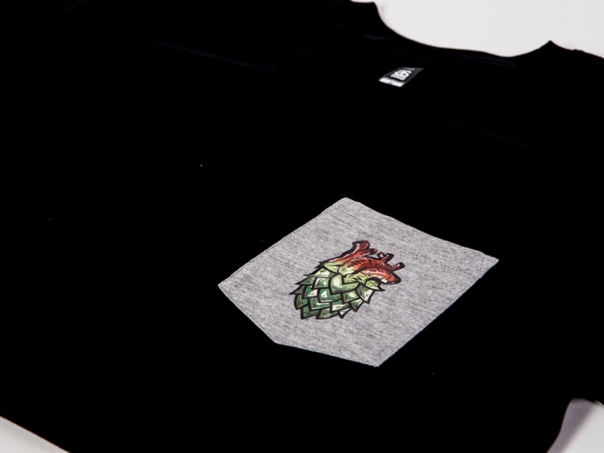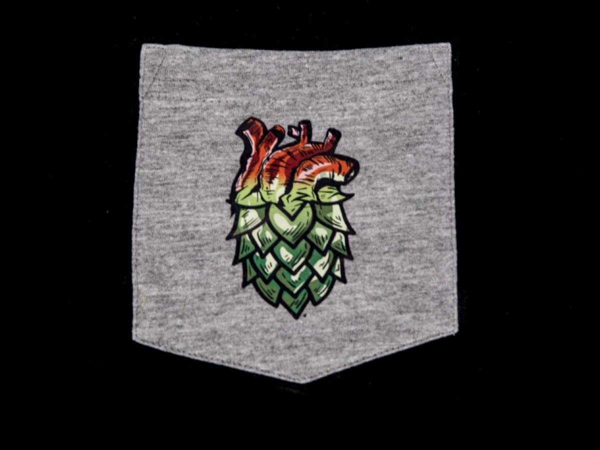 Wear your devotion to beer and be proud of the Hops pumping through your veins with this smart Hop Heart Pocket T.